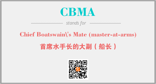 以上为Chief Boatswain\'s Mate (master-at-arms)英文缩略词CBMA的中文解释,以及该英文缩写在英语的流行度、分类和应用领域方面的信息。