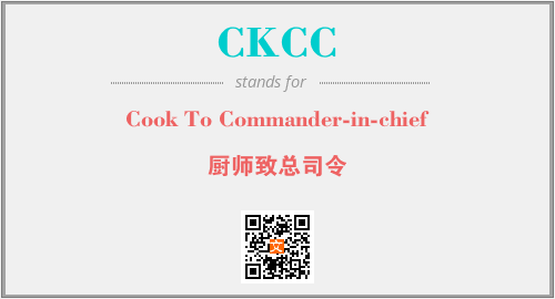 上述内容是“Cook To Commander-in-chief”作为“CKCC”的缩写,解释为“厨师致总司令”时的信息,以及英文缩略词CKCC所代表的英文单词,其对应的中文拼音、详细解释以及在英文中的流行度和相关分类、应用领域及应用示例等。