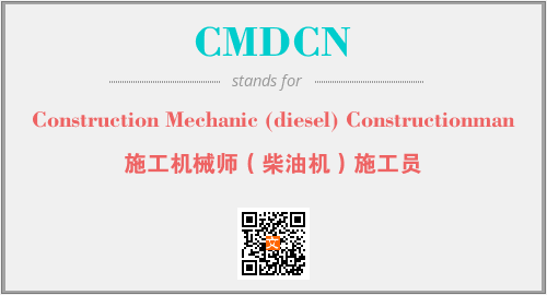 英文缩略词“CMDCN”经常作为“Construction Mechanic (diesel) Constructionman”的英文缩写来使用,中文表示:“施工机械师(柴油机)施工员”。本文将详细介绍英文缩写词CMDCN所代表英文单词,其对应的中文拼音、详细解释以及在英语中的流行度。此外,还有关于缩略词CMDCN的分类、应用领域及相关应用示例等。