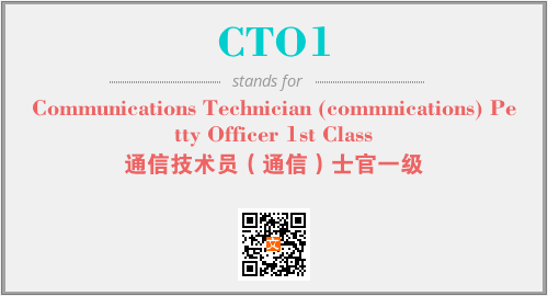 上述内容是“Communications Technician (commnications) Petty Officer 1st Class”作为“CTO1”的缩写,解释为“通信技术员(通信)士官一级”时的信息,以及英文缩略词CTO1所代表的英文单词,其对应的中文拼音、详细解释以及在英文中的流行度和相关分类、应用领域及应用示例等。