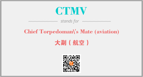 上述内容是“Chief Torpedoman\'s Mate (aviation)”作为“CTMV”的缩写,解释为“大副(航空)”时的信息,以及英文缩略词CTMV所代表的英文单词,其对应的中文拼音、详细解释以及在英文中的流行度和相关分类、应用领域及应用示例等。