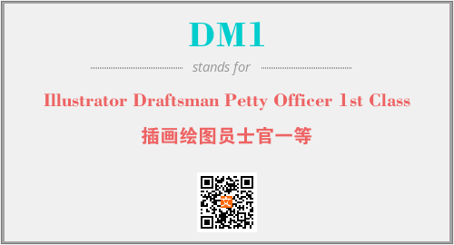 英文缩略词“DM1”经常作为“Illustrator Draftsman Petty Officer 1st Class”的英文缩写来使用,中文表示:“插画绘图员士官一等”。本文将详细介绍英文缩写词DM1所代表英文单词,其对应的中文拼音、详细解释以及在英语中的流行度。此外,还有关于缩略词DM1的分类、应用领域及相关应用示例等。