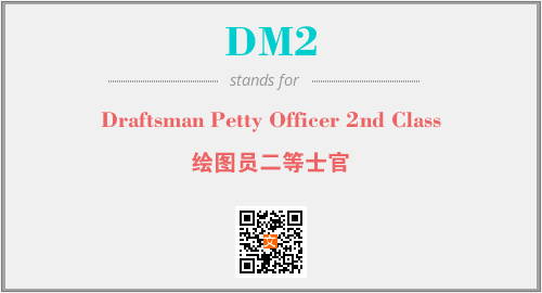 英文缩略词“DM2”经常作为“Draftsman Petty Officer 2nd Class”的英文缩写来使用,中文表示:“绘图员二等士官”。本文将详细介绍英文缩写词DM2所代表英文单词,其对应的中文拼音、详细解释以及在英语中的流行度。此外,还有关于缩略词DM2的分类、应用领域及相关应用示例等。