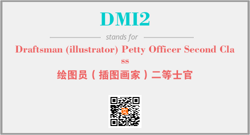 上述内容是“Draftsman (illustrator) Petty Officer Second Class”作为“DMI2”的缩写,解释为“绘图员(插图画家)二等士官”时的信息,以及英文缩略词DMI2所代表的英文单词,其对应的中文拼音、详细解释以及在英文中的流行度和相关分类、应用领域及应用示例等。