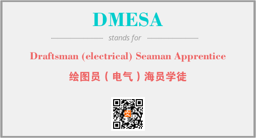 上述内容是“Draftsman (electrical) Seaman Apprentice”作为“DMESA”的缩写,解释为“绘图员(电气)海员学徒”时的信息,以及英文缩略词DMESA所代表的英文单词,其对应的中文拼音、详细解释以及在英文中的流行度和相关分类、应用领域及应用示例等。