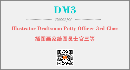 英文缩略词“DM3”经常作为“Illustrator Draftsman Petty Officer 3rd Class”的英文缩写来使用,中文表示:“插图画家绘图员士官三等”。本文将详细介绍英文缩写词DM3所代表英文单词,其对应的中文拼音、详细解释以及在英语中的流行度。此外,还有关于缩略词DM3的分类、应用领域及相关应用示例等。