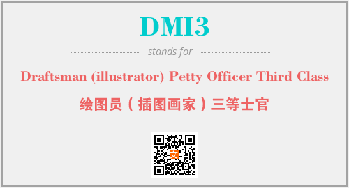 上述内容是“Draftsman (illustrator) Petty Officer Third Class”作为“DMI3”的缩写,解释为“绘图员(插图画家)三等士官”时的信息,以及英文缩略词DMI3所代表的英文单词,其对应的中文拼音、详细解释以及在英文中的流行度和相关分类、应用领域及应用示例等。
