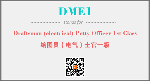 上述内容是“Draftsman (electrical) Petty Officer 1st Class”作为“DME1”的缩写,解释为“绘图员(电气)士官一级”时的信息,以及英文缩略词DME1所代表的英文单词,其对应的中文拼音、详细解释以及在英文中的流行度和相关分类、应用领域及应用示例等。