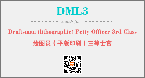 上述内容是“Draftsman (lithographic) Petty Officer 3rd Class”作为“DML3”的缩写,解释为“绘图员(平版印刷)三等士官”时的信息,以及英文缩略词DML3所代表的英文单词,其对应的中文拼音、详细解释以及在英文中的流行度和相关分类、应用领域及应用示例等。