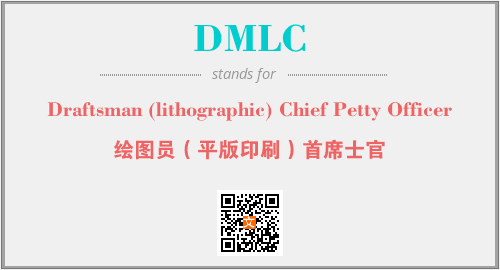 上述内容是“Draftsman (lithographic) Chief Petty Officer”作为“DMLC”的缩写,解释为“绘图员(平版印刷)首席士官”时的信息,以及英文缩略词DMLC所代表的英文单词,其对应的中文拼音、详细解释以及在英文中的流行度和相关分类、应用领域及应用示例等。