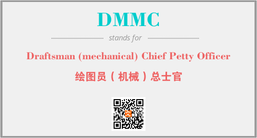 上述内容是“Draftsman (mechanical) Chief Petty Officer”作为“DMMC”的缩写,解释为“绘图员(机械)总士官”时的信息,以及英文缩略词DMMC所代表的英文单词,其对应的中文拼音、详细解释以及在英文中的流行度和相关分类、应用领域及应用示例等。