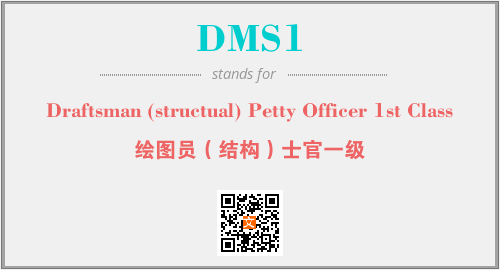 上述内容是“Draftsman (structual) Petty Officer 1st Class”作为“DMS1”的缩写,解释为“绘图员(结构)士官一级”时的信息,以及英文缩略词DMS1所代表的英文单词,其对应的中文拼音、详细解释以及在英文中的流行度和相关分类、应用领域及应用示例等。