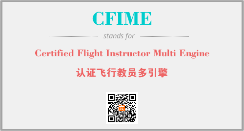 英文缩略词“CFIME”经常作为“Certified Flight Instructor Multi Engine”的英文缩写来使用,中文表示:“认证飞行教员多引擎”。本文将详细介绍英文缩写词CFIME所代表英文单词,其对应的中文拼音、详细解释以及在英语中的流行度。此外,还有关于缩略词CFIME的分类、应用领域及相关应用示例等。