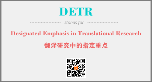 上述内容是“Designated Emphasis in Translational Research”作为“DETR”的缩写,解释为“翻译研究中的指定重点”时的信息,以及英文缩略词DETR所代表的英文单词,其对应的中文拼音、详细解释以及在英文中的流行度和相关分类、应用领域及应用示例等。