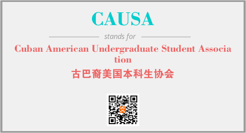 上述内容是“Cuban American Undergraduate Student Association”作为“CAUSA”的缩写,解释为“古巴裔美国本科生协会”时的信息,以及英文缩略词CAUSA所代表的英文单词,其对应的中文拼音、详细解释以及在英文中的流行度和相关分类、应用领域及应用示例等。