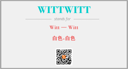 上述内容是“Witt — Witt”作为“WITTWITT”的缩写,解释为“白色-白色”时的信息,以及英文缩略词WITTWITT所代表的英文单词,其对应的中文拼音、详细解释以及在英文中的流行度和相关分类、应用领域及应用示例等。