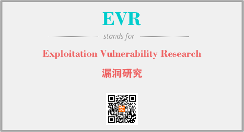 上述内容是“Exploitation Vulnerability Research”作为“EVR”的缩写,解释为“漏洞研究”时的信息,以及英文缩略词EVR所代表的英文单词,其对应的中文拼音、详细解释以及在英文中的流行度和相关分类、应用领域及应用示例等。