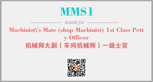 英文缩略词“MMS1”经常作为“Machinist\'s Mate (shop Machinist) 1st Class Petty Officer”的英文缩写来使用,中文表示:“机械师大副(车间机械师)一级士官”。本文将详细介绍英文缩写词MMS1所代表英文单词,其对应的中文拼音、详细解释以及在英语中的流行度。此外,还有关于缩略词MMS1的分类、应用领域及相关应用示例等。