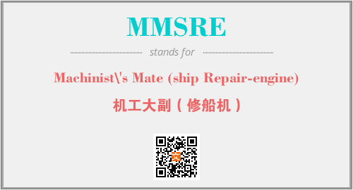 英文缩略词“MMSRE”经常作为“Machinist\'s Mate (ship Repair-engine)”的英文缩写来使用,中文表示:“机工大副(修船机)”。本文将详细介绍英文缩写词MMSRE所代表英文单词,其对应的中文拼音、详细解释以及在英语中的流行度。此外,还有关于缩略词MMSRE的分类、应用领域及相关应用示例等。
