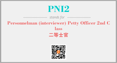 上述内容是“Personnelman (interviewer) Petty Officer 2nd Class”作为“PNI2”的缩写,解释为“二等士官”时的信息,以及英文缩略词PNI2所代表的英文单词,其对应的中文拼音、详细解释以及在英文中的流行度和相关分类、应用领域及应用示例等。