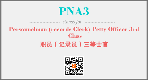 上述内容是“Personnelman (records Clerk) Petty Officer 3rd Class”作为“PNA3”的缩写,解释为“职员(记录员)三等士官”时的信息,以及英文缩略词PNA3所代表的英文单词,其对应的中文拼音、详细解释以及在英文中的流行度和相关分类、应用领域及应用示例等。