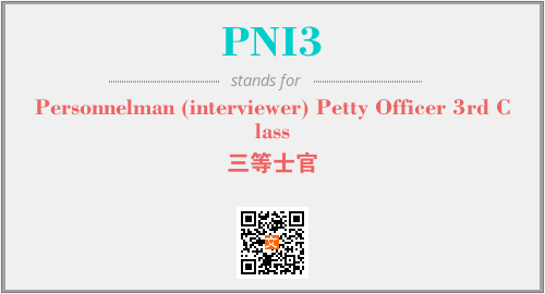 上述内容是“Personnelman (interviewer) Petty Officer 3rd Class”作为“PNI3”的缩写,解释为“三等士官”时的信息,以及英文缩略词PNI3所代表的英文单词,其对应的中文拼音、详细解释以及在英文中的流行度和相关分类、应用领域及应用示例等。