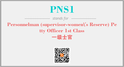 上述内容是“Personnelman (supervisor-women\'s Reserve) Petty Officer 1st Class”作为“PNS1”的缩写,解释为“一级士官”时的信息,以及英文缩略词PNS1所代表的英文单词,其对应的中文拼音、详细解释以及在英文中的流行度和相关分类、应用领域及应用示例等。