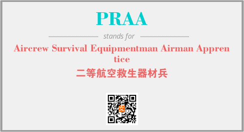 上述内容是“Aircrew Survival Equipmentman Airman Apprentice”作为“PRAA”的缩写,解释为“二等航空救生器材兵”时的信息,以及英文缩略词PRAA所代表的英文单词,其对应的中文拼音、详细解释以及在英文中的流行度和相关分类、应用领域及应用示例等。