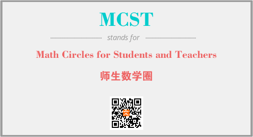 英文缩略词“MCST”经常作为“Math Circles for Students and Teachers”的英文缩写来使用,中文表示:“师生数学圈”。本文将详细介绍英文缩写词MCST所代表英文单词,其对应的中文拼音、详细解释以及在英语中的流行度。此外,还有关于缩略词MCST的分类、应用领域及相关应用示例等。