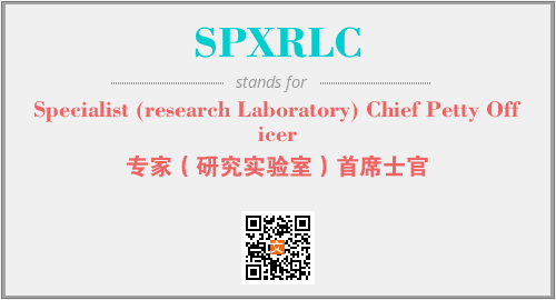 英文缩略词“SPXRLC”经常作为“Specialist (research Laboratory) Chief Petty Officer”的英文缩写来使用,中文表示:“专家(研究实验室)首席士官”。本文将详细介绍英文缩写词SPXRLC所代表英文单词,其对应的中文拼音、详细解释以及在英语中的流行度。此外,还有关于缩略词SPXRLC的分类、应用领域及相关应用示例等。