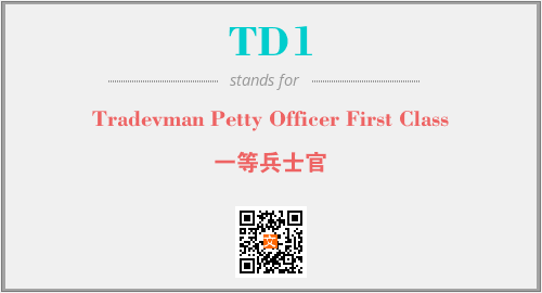 英文缩略词“TD1”经常作为“Tradevman Petty Officer First Class”的英文缩写来使用,中文表示:“一等兵士官”。本文将详细介绍英文缩写词TD1所代表英文单词,其对应的中文拼音、详细解释以及在英语中的流行度。此外,还有关于缩略词TD1的分类、应用领域及相关应用示例等。