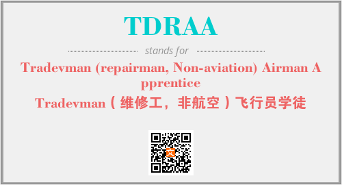上述内容是“Tradevman (repairman, Non-aviation) Airman Apprentice”作为“TDRAA”的缩写,解释为“Tradevman(维修工,非航空)飞行员学徒”时的信息,以及英文缩略词TDRAA所代表的英文单词,其对应的中文拼音、详细解释以及在英文中的流行度和相关分类、应用领域及应用示例等。