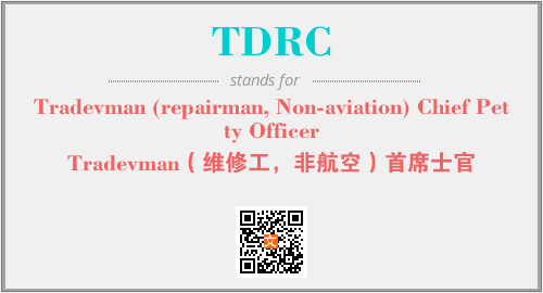英文缩略词“TDRC”经常作为“Tradevman (repairman, Non-aviation) Chief Petty Officer”的英文缩写来使用,中文表示:“Tradevman(维修工,非航空)首席士官”。本文将详细介绍英文缩写词TDRC所代表英文单词,其对应的中文拼音、详细解释以及在英语中的流行度。此外,还有关于缩略词TDRC的分类、应用领域及相关应用示例等。