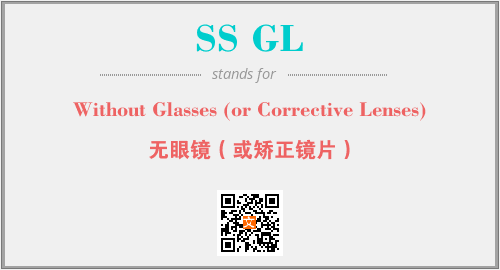 上述内容是“Without Glasses (or Corrective Lenses)”作为“SS GL”的缩写,解释为“无眼镜(或矫正镜片)”时的信息,以及英文缩略词SS GL所代表的英文单词,其对应的中文拼音、详细解释以及在英文中的流行度和相关分类、应用领域及应用示例等。