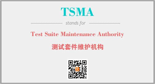 英文缩略词“TSMA”经常作为“Test Suite Maintenance Authority”的英文缩写来使用,中文表示:“测试套件维护机构”。本文将详细介绍英文缩写词TSMA所代表英文单词,其对应的中文拼音、详细解释以及在英语中的流行度。此外,还有关于缩略词TSMA的分类、应用领域及相关应用示例等。