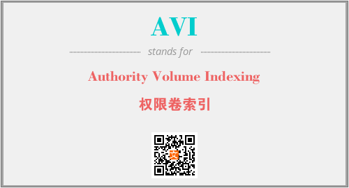 上述内容是“Authority Volume Indexing”作为“AVI”的缩写,解释为“权限卷索引”时的信息,以及英文缩略词AVI所代表的英文单词,其对应的中文拼音、详细解释以及在英文中的流行度和相关分类、应用领域及应用示例等。