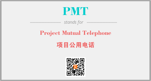 英文缩略词“PMT”经常作为“Project Mutual Telephone”的英文缩写来使用,中文表示:“项目公用电话”。本文将详细介绍英文缩写词PMT所代表英文单词,其对应的中文拼音、详细解释以及在英语中的流行度。此外,还有关于缩略词PMT的分类、应用领域及相关应用示例等。