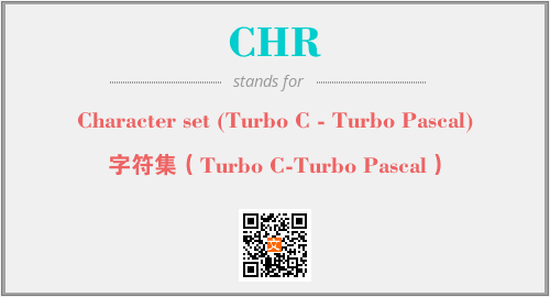英文缩略词“CHR”经常作为“Character set (Turbo C - Turbo Pascal)”的英文缩写来使用,中文表示:“字符集(Turbo C-Turbo Pascal)”。本文将详细介绍英文缩写词CHR所代表英文单词,其对应的中文拼音、详细解释以及在英语中的流行度。此外,还有关于缩略词CHR的分类、应用领域及相关应用示例等。