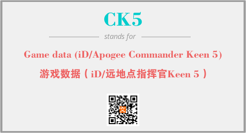 上述内容是“Game data (iD/Apogee Commander Keen 5)”作为“CK5”的缩写,解释为“游戏数据(iD/远地点指挥官Keen 5)”时的信息,以及英文缩略词CK5所代表的英文单词,其对应的中文拼音、详细解释以及在英文中的流行度和相关分类、应用领域及应用示例等。