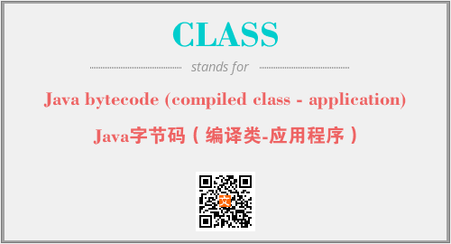 上述内容是“Java bytecode (compiled class - application)”作为“CLASS”的缩写,解释为“Java字节码(编译类-应用程序)”时的信息,以及英文缩略词CLASS所代表的英文单词,其对应的中文拼音、详细解释以及在英文中的流行度和相关分类、应用领域及应用示例等。