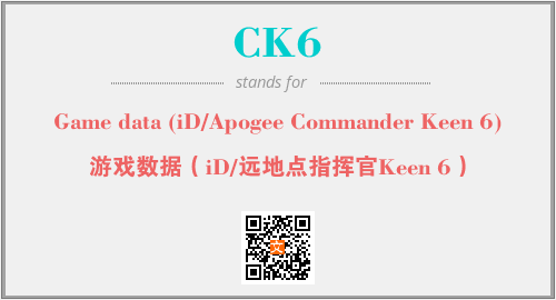上述内容是“Game data (iD/Apogee Commander Keen 6)”作为“CK6”的缩写,解释为“游戏数据(iD/远地点指挥官Keen 6)”时的信息,以及英文缩略词CK6所代表的英文单词,其对应的中文拼音、详细解释以及在英文中的流行度和相关分类、应用领域及应用示例等。