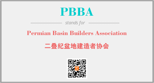 英文缩略词“PBBA”经常作为“Permian Basin Builders Association”的英文缩写来使用,中文表示:“二叠纪盆地建造者协会”。本文将详细介绍英文缩写词PBBA所代表英文单词,其对应的中文拼音、详细解释以及在英语中的流行度。此外,还有关于缩略词PBBA的分类、应用领域及相关应用示例等。
