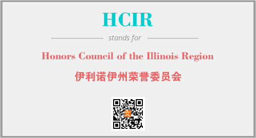 上述内容是“Honors Council of the Illinois Region”作为“HCIR”的缩写,解释为“伊利诺伊州荣誉委员会”时的信息,以及英文缩略词HCIR所代表的英文单词,其对应的中文拼音、详细解释以及在英文中的流行度和相关分类、应用领域及应用示例等。