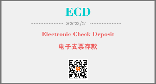 上述内容是“Electronic Check Deposit”作为“ECD”的缩写,解释为“电子支票存款”时的信息,以及英文缩略词ECD所代表的英文单词,其对应的中文拼音、详细解释以及在英文中的流行度和相关分类、应用领域及应用示例等。