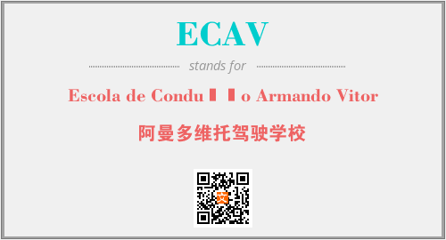 上述内容是“Escola de Condução Armando Vitor”作为“ECAV”的缩写,解释为“阿曼多维托驾驶学校”时的信息,以及英文缩略词ECAV所代表的英文单词,其对应的中文拼音、详细解释以及在英文中的流行度和相关分类、应用领域及应用示例等。