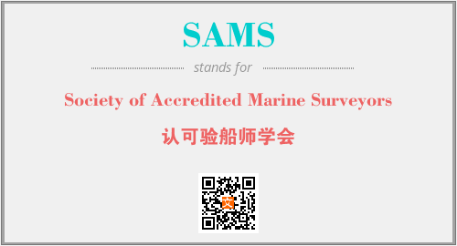 上述内容是“Society of Accredited Marine Surveyors”作为“SAMS”的缩写,解释为“认可验船师学会”时的信息,以及英文缩略词SAMS所代表的英文单词,其对应的中文拼音、详细解释以及在英文中的流行度和相关分类、应用领域及应用示例等。