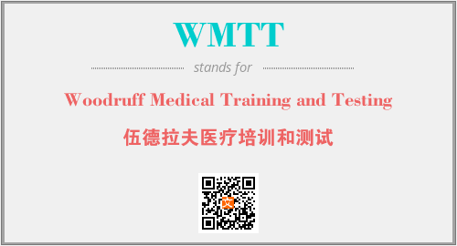 以上为Woodruff Medical Training and Testing英文缩略词WMTT的中文解释,以及该英文缩写在英语的流行度、分类和应用领域方面的信息。