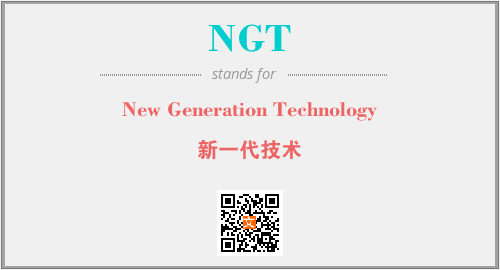 上述内容是“New Generation Technology”作为“NGT”的缩写,解释为“新一代技术”时的信息,以及英文缩略词NGT所代表的英文单词,其对应的中文拼音、详细解释以及在英文中的流行度和相关分类、应用领域及应用示例等。