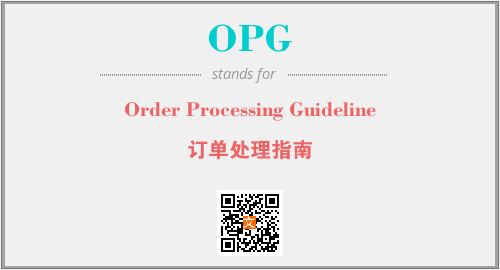 英文缩略词“OPG”经常作为“Order Processing Guideline”的英文缩写来使用,中文表示:“订单处理指南”。本文将详细介绍英文缩写词OPG所代表英文单词,其对应的中文拼音、详细解释以及在英语中的流行度。此外,还有关于缩略词OPG的分类、应用领域及相关应用示例等。