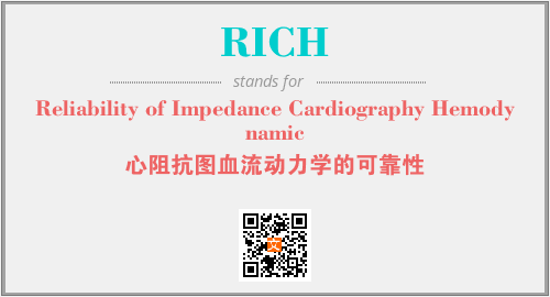 上述内容是“Reliability of Impedance Cardiography Hemodynamic”作为“RICH”的缩写,解释为“心阻抗图血流动力学的可靠性”时的信息,以及英文缩略词RICH所代表的英文单词,其对应的中文拼音、详细解释以及在英文中的流行度和相关分类、应用领域及应用示例等。